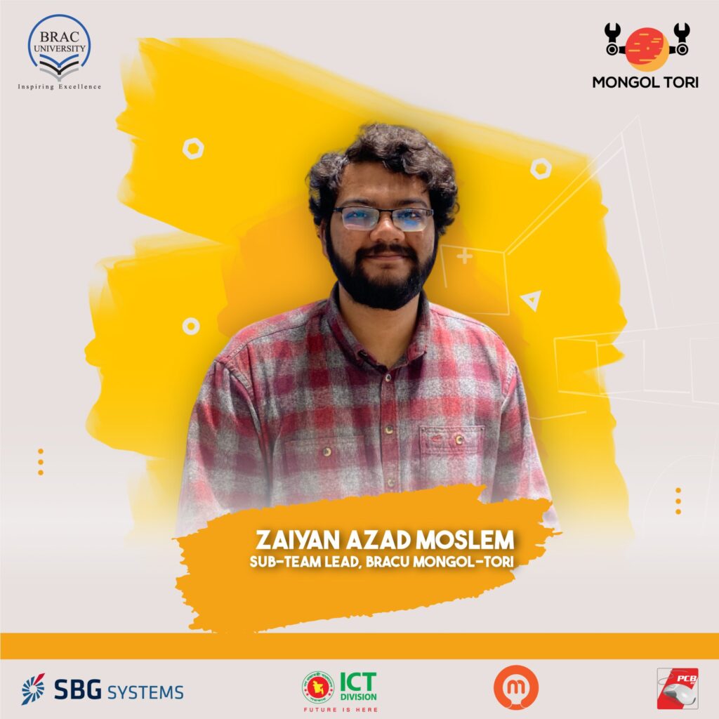 Zaiyan Azad Moslem, Electronics sub-team lead for Mongol Tori, joined BRAC University’s EEE department in 2021. With a background in science competitions and school debates, he became sub-team lead in 2023 and has been essential to projects like IRC and URC. His passion and dedication inspire the team.